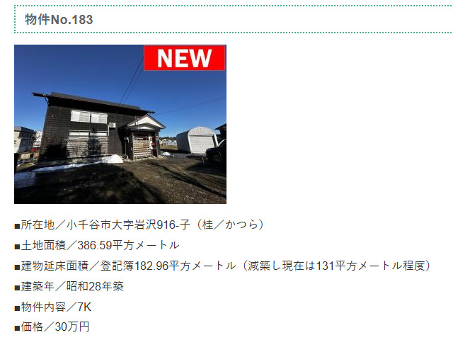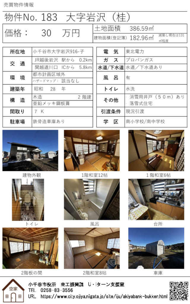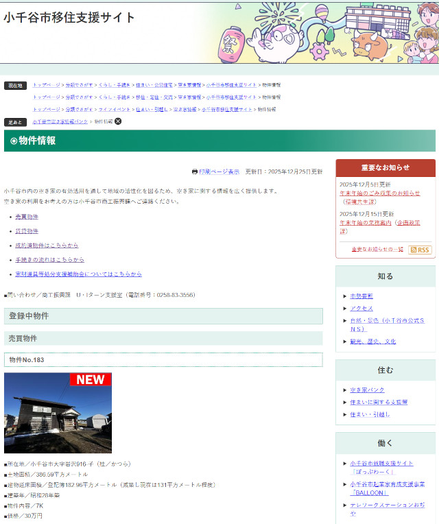 小千谷市にも「空き家バンク」という制度があります。 簡単に言えば、小千谷市と不動産屋さんが空き家の売買を仲介してくれるというものです。