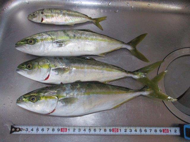 | 28〜30cmのワカシが3匹、17cmのアジが1匹でした。 |