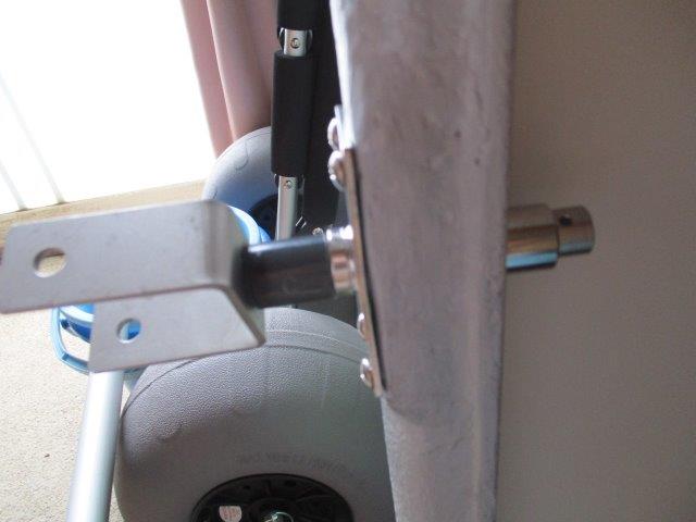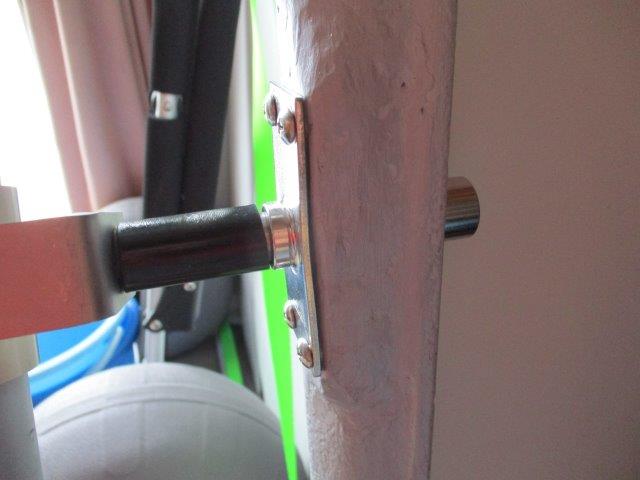 | このようにRピンを差し込めばオール取付金具は抜けません。 この結果オールを使うことが出来なくなるようなら元に戻しますが、どうなることやら・・・。 |