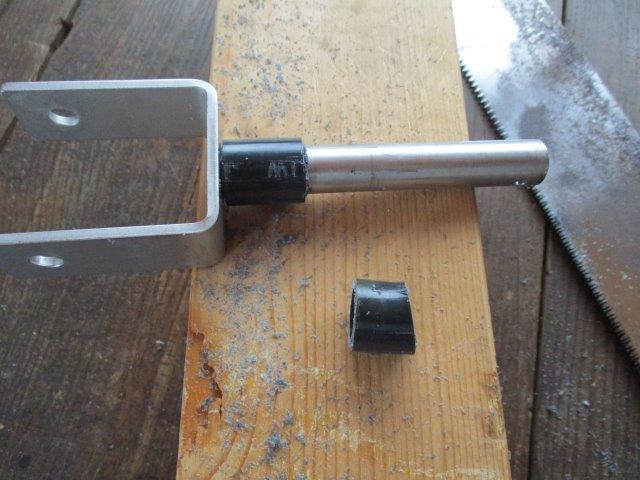 | 改造前、オールソケットにオール取付金具を差し込んだ状態です。 金具にはRピンを差し込む穴が開いているのですが、その部分が出ていません。 |